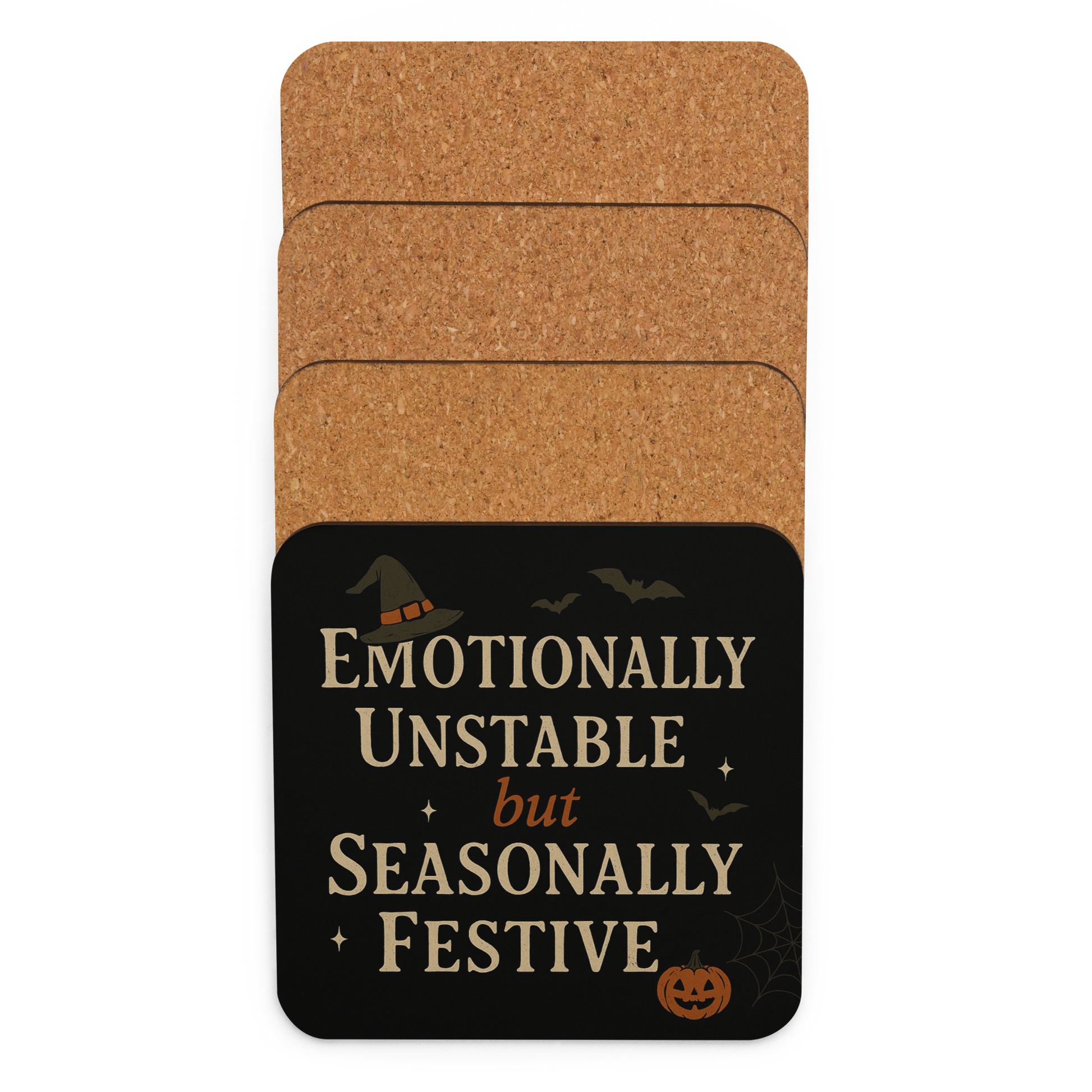 Add a little unhinged Halloween spirit to your coffee table. This cork-back coaster is both spooky and practical — perfect for catching your tears, your pumpkin spice, or your questionable life choices. Durable, waterproof, and heat-resistant, it’ll protect your surfaces while letting your guests know exactly where your mental health (and your holiday spirit) stand.